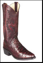 leather shaft, ostrich underlay, full leather lining, leather outsole and cowboy heel.