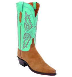 • Upper: Turquoise Goat • Vamp: Camel Rough Out • Height: 12” • Toe/Heel availability: 5/4