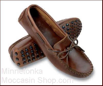 This moccasin is made from a beautiful dark brown leather and features a long wearing nub bottom for extra durability and traction.